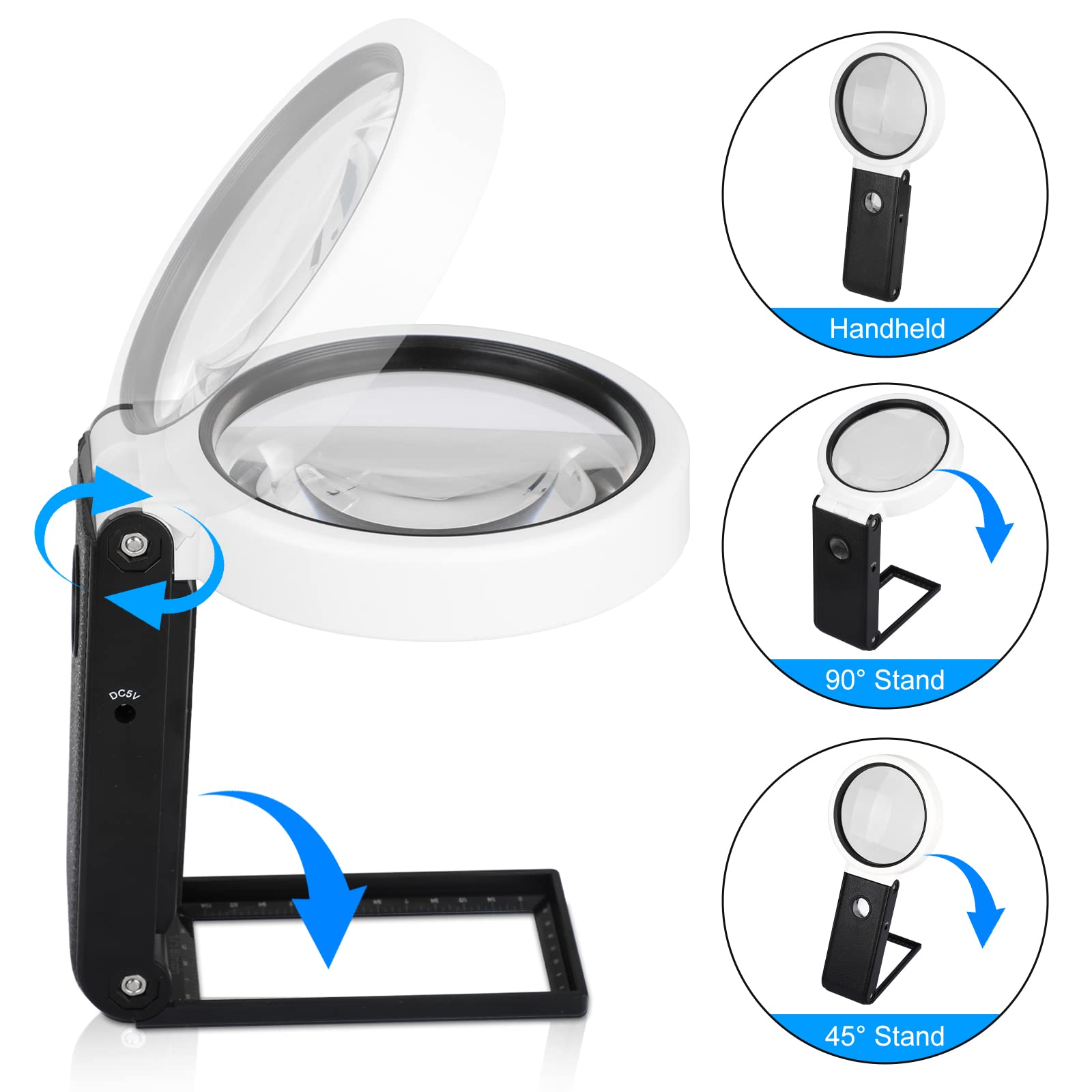 Folding Magnifier On Stand 3x 5x Magnification Led Light For Illum Worthydeal Ltd