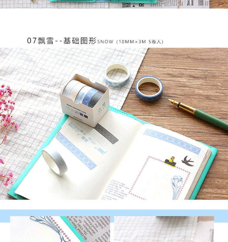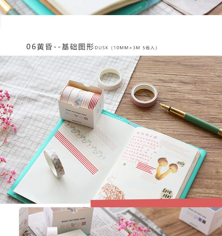 5 Roll Set Pattern Themed Washi Tape For Planner And Journal Etsy Denmark
